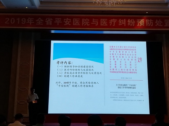 2019年8月20-21日,由安徽省醫(yī)學(xué)情報(bào)研究所舉辦的全省平安醫(yī)院與醫(yī)療糾紛預(yù)防處置培訓(xùn)班(第一批)在宣城涇縣舉行,我院選派1名專職人員參加培訓(xùn),來自皖南地區(qū)及安慶市從事平安醫(yī)院創(chuàng)建與醫(yī)療糾紛預(yù)防處置工作的相關(guān)人員共200余人參加了培訓(xùn)班。